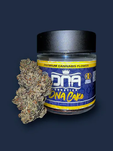 DNA Cake is an indica dominant hybrid strain (80% indica/20% sativa) created through crossing the potent Gelato 33 X Wedding Cake strains. Beloved for its amazing flavor and gorgeous appearance, DNA Cake is perfect for any fan of classic indicas. This bud has a sweet and nutty vanilla cake flavor with a lightly minty sour gelato exhale. The DNA Cake high is just as amazing, with a soothing nighttime overtone that's great for helping you get to sleep when it just won't come. Your mood will feel boosted and your mind will be filled with an expansive euphoria that leaves you with no room for bad moods or negative thoughts. A deep physical calm accompanies this heady state, helping your body to truly stretch out and relax before you finally get to sleep. Combined with its high 19-23% average THC level, these effects make DNA Cake a great choice for treating a wide variety of conditions including insomnia, chronic pain, cramps or muscle spasms and depression.