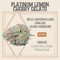Bright, sweet, and smooth, Platinum Lemon Cherry Gelato blends citrus zest with creamy cherry and a hint of gas. The high is relaxed but clear, leaving you chatty, focused, and uplifted.