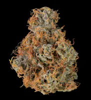 Thick and sticky with frosty green buds and bold orange hairs, Big Buns lives up to its name with serious weight and presence. The aroma hits with that unmistakable glue and gas layered over a faint savory note that hints at something meaty underneath. The flavor stays true to the nose, dense and gassy with deep earthy undertones. The effects arrive heavy and slow, settling deep into the body with a calm that locks you in and smooths everything around you.