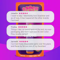 SNACKBAR™ vapes bring you bold fruit flavors and super juicy puffs, powered by Clean Heat™ Ceramic Technology for a pure, metal + cotton free experience. Enjoy smooth, consistent hits without off flavors—just crave-worthy clouds every time. » TRY RISK FREE — 100% Happiness Guaranteed! » SUPPORT LOCAL! — Chicago-based Independent Founder » WOMEN-OWNED — Made by a Woman-Owned Business LET'S GET SNACKY! snackbarvape.com | @snackbarvape